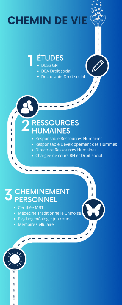 Certifiée comme praticienne en MBTI (Myers Briggs Type Indicator : indicateur typologique de Myers-Briggs basé sur la théorie des types psychologiques de Carl Jung), outil qui m’a mis le pied à l’étrier dans le travail sur soi et l’accompagnement, j’ai pu accompagner des étudiants et des jeunes en recherche d’orientation, pour une meilleure connaissance de soi.